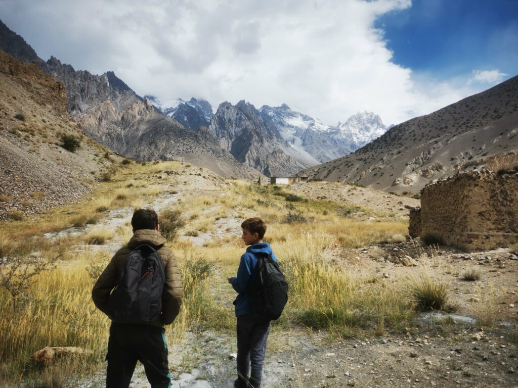 10月のパミール高原は寒い。岩は濡れてるし、岩ですべって川に落ちたらたいへんなことになるよね。